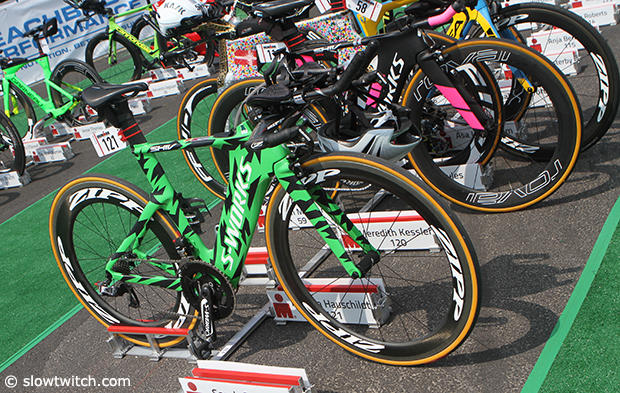 Trevor and Heather Wurtele are among 8 pro athletes racing on a Cervelo P5X tomorrow. Word also has it that one age grouper will start on one.