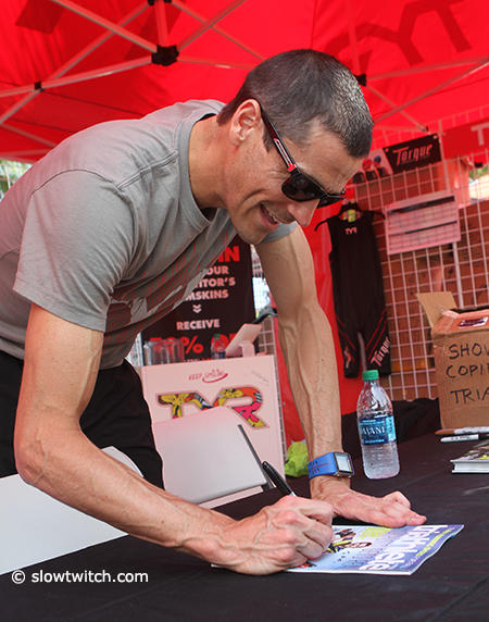 Andy Potts was busy in the TYR booth signing autographs.