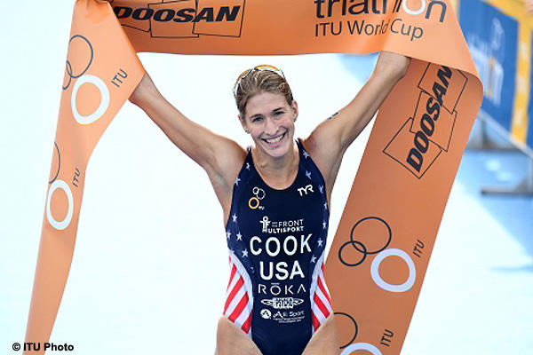 “I got out pretty well on the first lap (swim) and set myself up for the rest of the race,” said Cook. “I tried to hang with [Ueda] as long as I could but had no response to her move on the third lap [of the run]. I’m pleased with second but would have liked to be in the mix with her a little longer.”