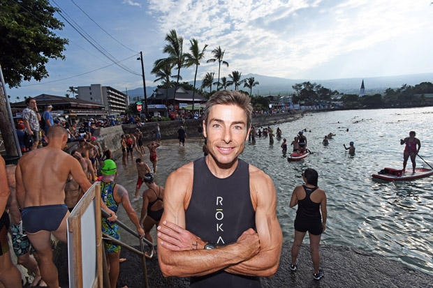 Renowned Moto GP racer Ben Bostrom, a good friend of the late Dave Mirra, relaxes after a training swim in Kailua-Kona. Bostrom finished in 10:36:29.