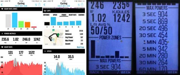 Besides the ability to push post ride data for detailed analysis to a number of 3rd party sites such Strava, TrainingPeaks, SportTracks, and DropBox, the ELEMENT provides a number of simple visual graphics of the workout and summaries the most common metrics (power, cadence, time in zones).
