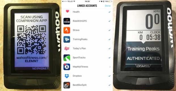 Wahoo made things very simple for ELEMNT users by leveraging smartphones to simplify the initial set-up, pairing process, and the use of 3rd party operating systems. Their companion ELEMNT app, for both iOS and Android, pairs via scanning a QR code that appears on the ELEMNT when you first attempt to pair the ELEMNT to a smartphone. Once paired, users can use their smartphones to link the ELEMNT to major software applications (TrainingPeaks, SportsTracks, BestBike Split, etc.), customize their screen displays (number and order of metrics displayed), select their Wi-Fi network for wireless updates to the ELEMNT, upload rides, or download routes and maps.