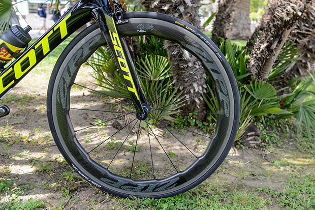 The relatively new ZIPP NSW 454 wheels are on Kienle's bike, and he is racing on Continental GrandPrix Supersonic 23mm tires.