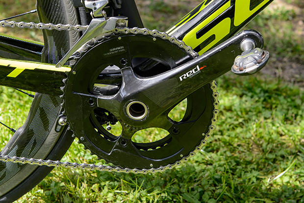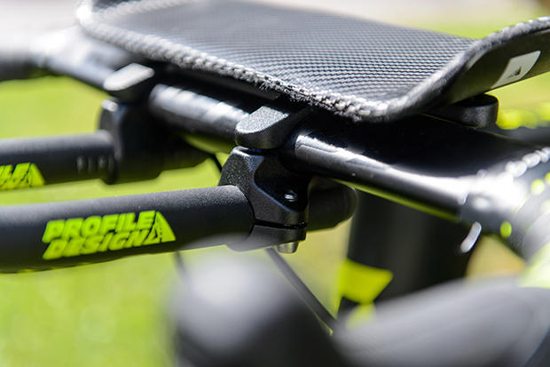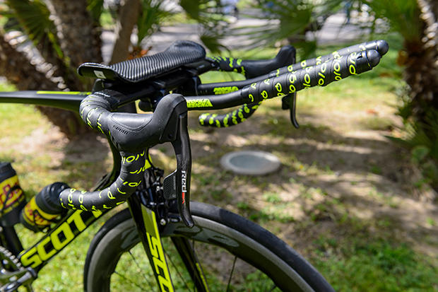 Kienle's team mounted the long Profile Design aero extensions under the road bars. Kienle is a SRAM man and he uses SRAM Red E-tap on his bike.