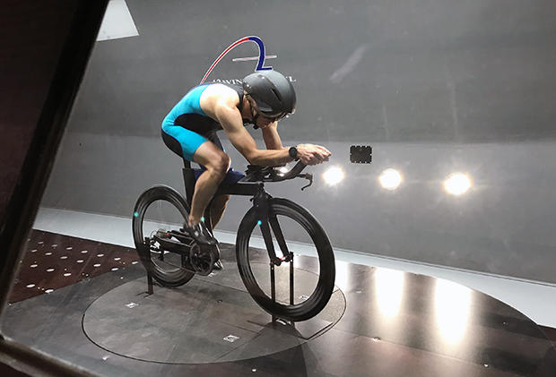 With Kiley done for this session, it is time for the Cervelo P5X to be tested without a rider. The bike was loaned to this test by Inside Out Sports.