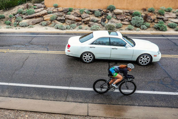 Below is what I look like now (February, 2017). I’d like my elbows a little closer together, I think, but the bike fit sure makes people talk! I ride lower than the passenger window on an SUV, and so I often take the lane so that I’m visible.