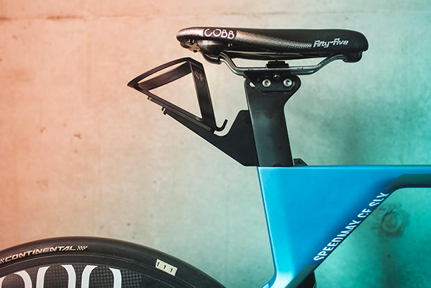 Lange stayed with Cobb as his saddle choice as this Fifty-Five model prevents him from sliding around too much. The bottle mount behind the post is Canyon specific.