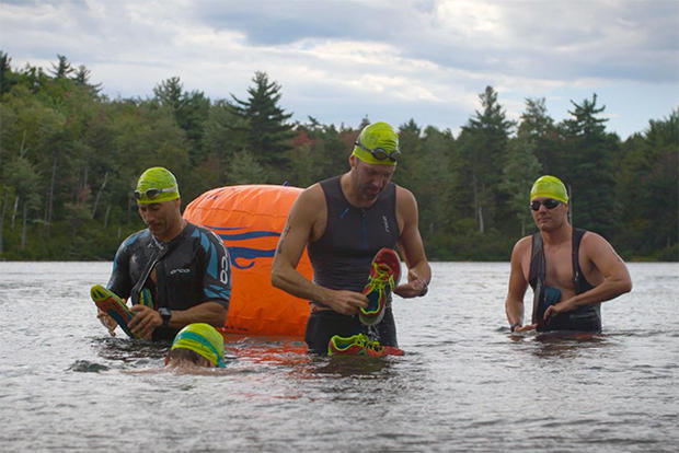 ST: Do most folks swim with their shoes or do they store the shoes in their race suit?