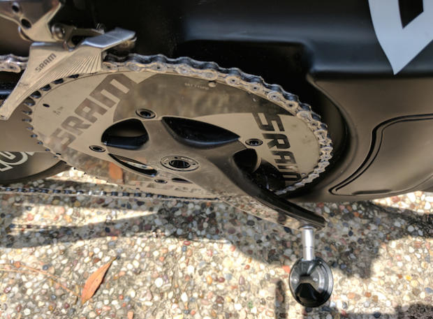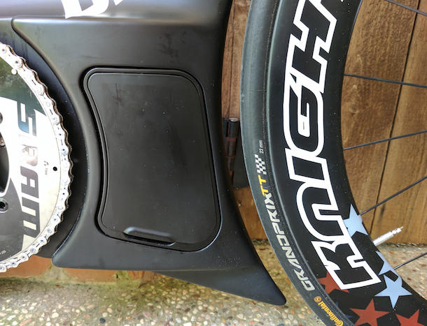 For IRONMAN Texas' flat bike course Russell opted to use a massive SRAM Red 55-tooth chain ring, tucked nicely into the frame.