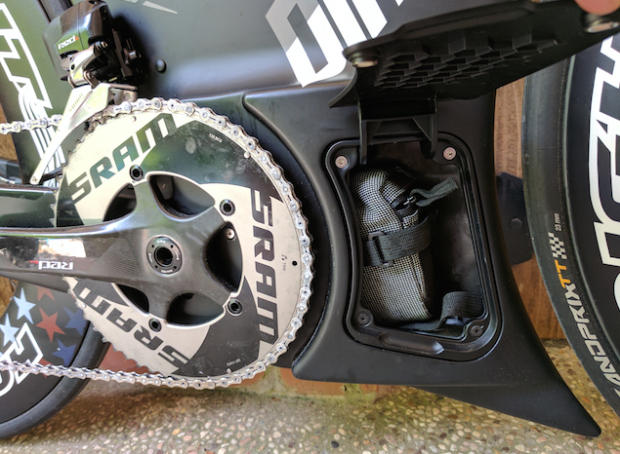 Luckily Russell didn't need to open this on race day though he did crash after hitting a pothole 105 miles into the ride while looking down sipping a drink.