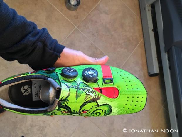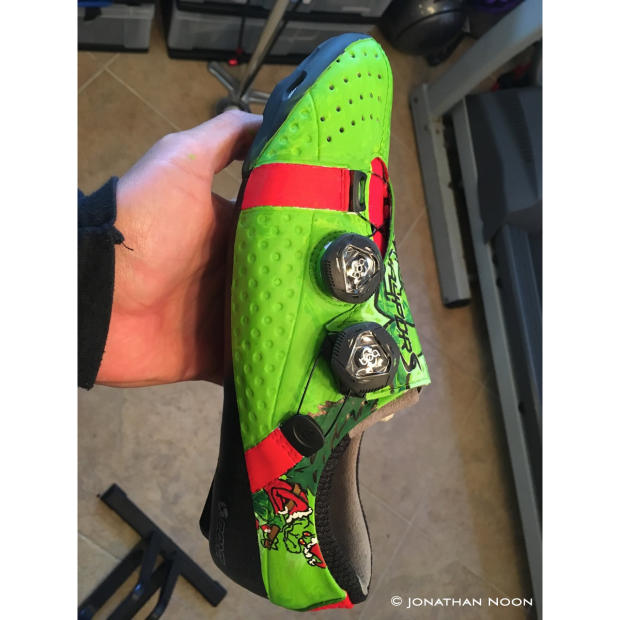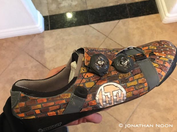 JN: Cost largely depends on how complicated the design, but I usually quote between $100-200 for the paint job. Sometimes cheaper if it's just something like a logo, solid/basic coloring or something. People can send me their existing shoe or I can set them up with Bont as I have a relationship with them now regarding this endeavor. Anyone who hasn't tried Bont cycling shoes really needs to – I truly believe the VayporS is a performance enhancer.