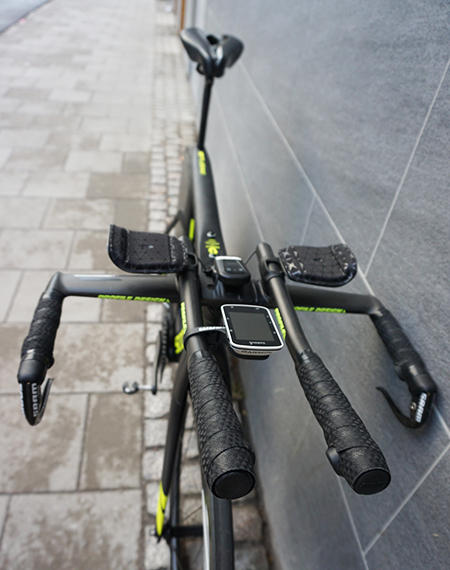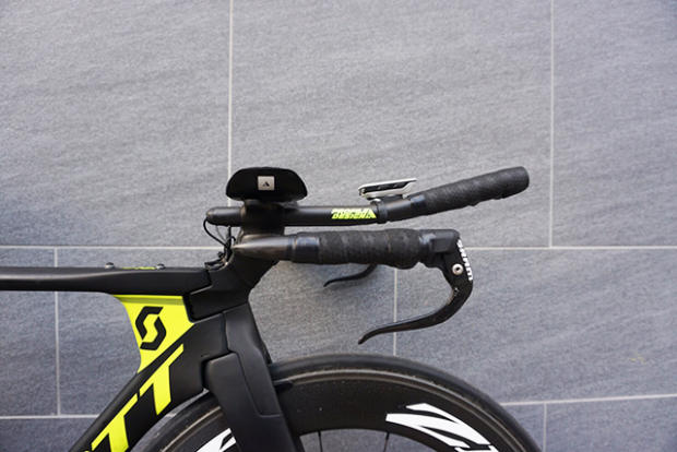 The view from above shows the Profile Design aero bars, Garmin computer and the Specialized Sitero saddle. "The saddle I kept from my previous bike as my butt agreed with it very much," said Norden.