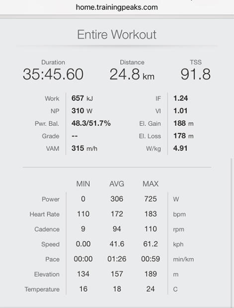 Here is a screenshot from the Lisa Norden TrainingPeaks workout from the Swedish TT Nats.