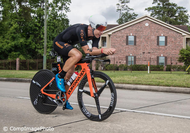 Timo Bracht is 1.82 meters tall, weighs 70kg and rides this distinctive orange 56cm Quintana Roo PRsix.