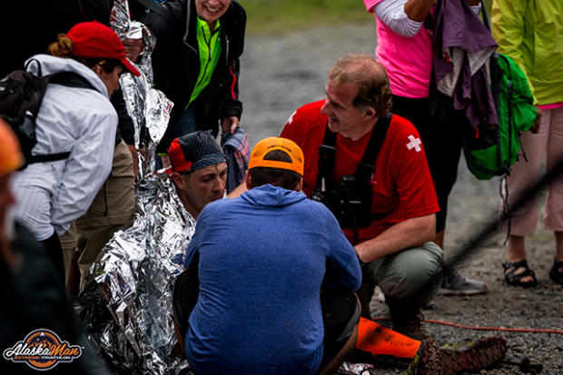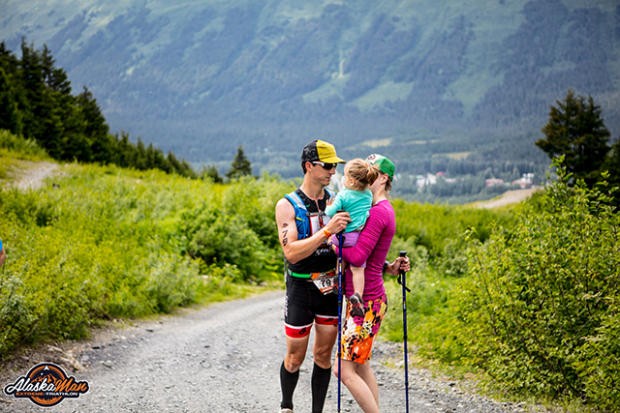 Mackie Derrick from Anchorage, AK had time to say hi to his family and finish 10th male in 13:20:59