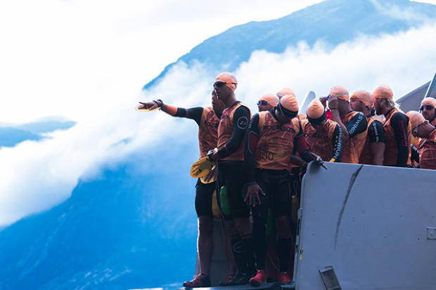 Ready to jump from the boat into the fjord to get