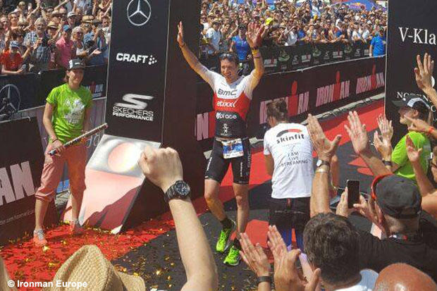 After 9 wins in 9 tries from 2007 through 2016, Switzerland’s Ronnie Schildknecht suffered a muscle strain on the run and did not finish. Schildknecht took consecutive Ironman Switzerland victories from 2007 through 2013, skipped 2014 and won at Zurich in 2015 and 2016.