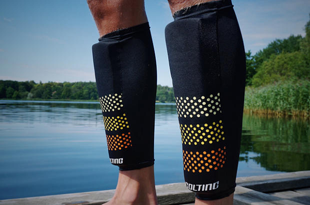 A comparatively young sport generates a lot of material experiments. A feature that is commonly seen during races are all sorts of floatation materials stowed in compressions socks to compensate the burden of swimming with shoes. In addition to the Swimrun suit Colting bids two different dimensions of “Swimcalfs SC02”. The comfortable calf guards come in two sizes with a 14mm or 25mm thick front panel dependent on the athletes swimming skills. I will use them both at Angaloppet and the ÖtillÖ World Championships.