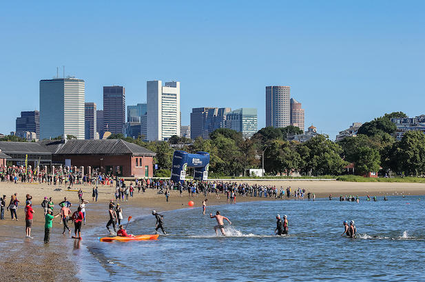The race starts and finishes on Carson Beach in Southie with the downtown skyline offering a stunning backdrop.