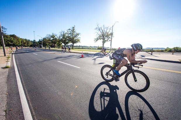 A flat and fast bike course on closed roads awaited athletes. All along the shoreline in Southie.