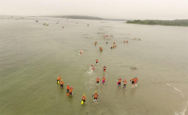 The defending female team of Emily Finanger and Erin Hunter (Team Valkyrie) successfully defended their title in 2017 and finished 7th overall. Here exiting another swim.