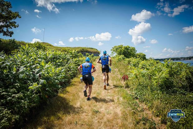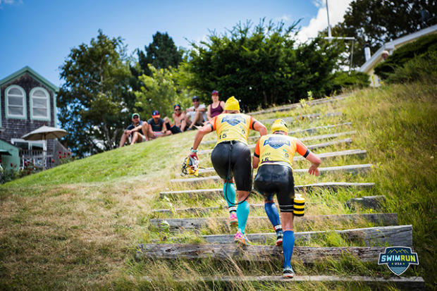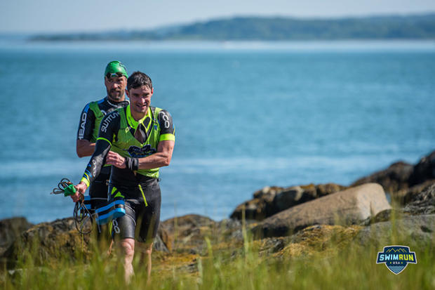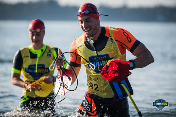 Californians Andrew Hewitt and Sean Durkin run SwimRun races in California but came out to Maine to compete. The two strong swimmers finished 8th in the male division and 9th overall.