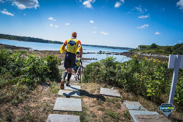 The terrain is rather tricky in certain sections and trail running skills are advantageous in the SwimRun USA Casco Bay. But with its long swims, swimming skills are very important too.