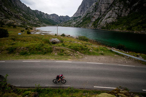 The Extreme edition of the Lofoten Triathlon takes place north of the arctic circle in the land of the midnight sun and the northern lights. There was also an Olympic distance offering the same weekend that attracted about 100 starters but we focused here on the 4km swim, 196km bike and 45km Extreme edition and we got images.