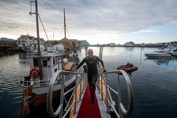 Solid ground under the feet feels very good after 4km in cold arctic water.