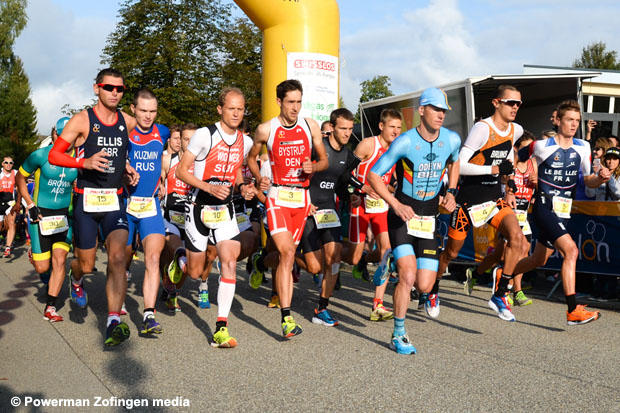 Halfway through the bike leg, Bystrup led by 18 seconds on Odeyn, 1:24 on Thomas Bruins, 3:12 on Alistair Eeckman, 4:24 on Kuzmin, and 6 minutes on Gäel Le Bellec.
