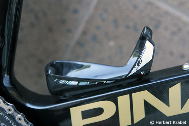 The aero Elite Chrono CX water bottle was not yet on the bike when we saw it.