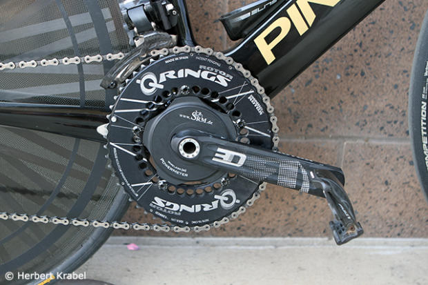 Vergara used Rotor 3D cranks with 53/39 Q-Rings and an SRM power meter in Chattanooga.