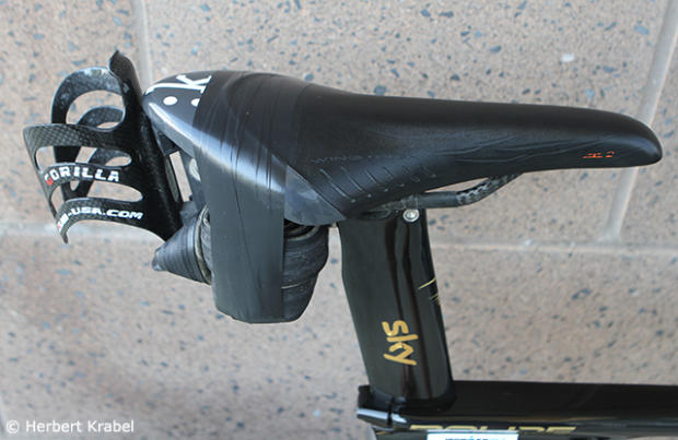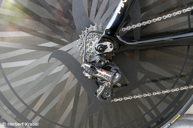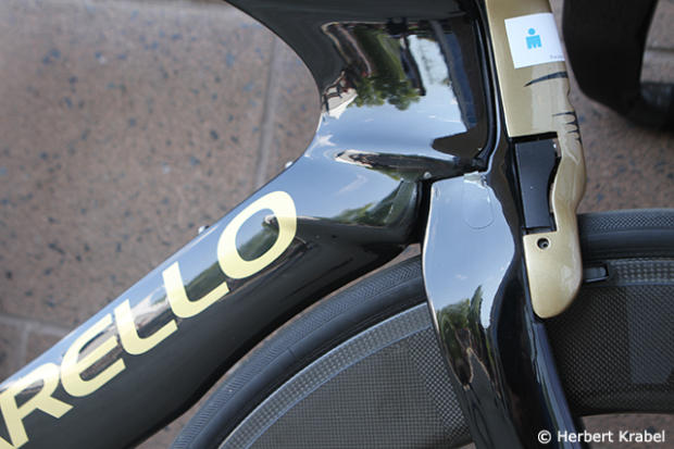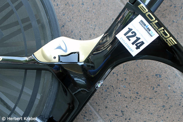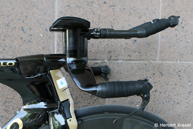 Vergara is a tall athlete and this Pinarello Bolide is thus also relatively tall. He neither spoke English or German, and I really can't speak Spanish and thus I could only discern details that I could see with my eyes. Money was clearly however not an object when building up this Bolide.