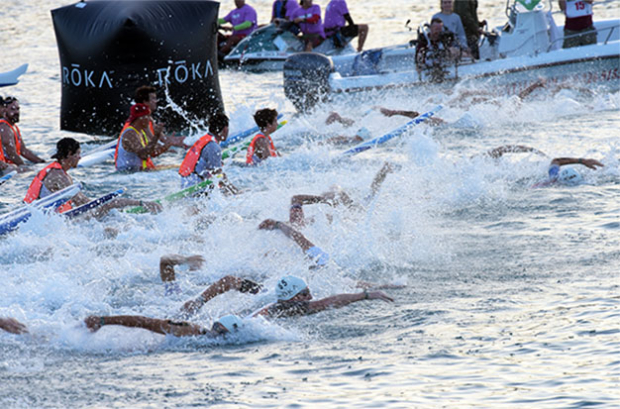 Photos above of the men's and women's swim starts: Timothy Carlson