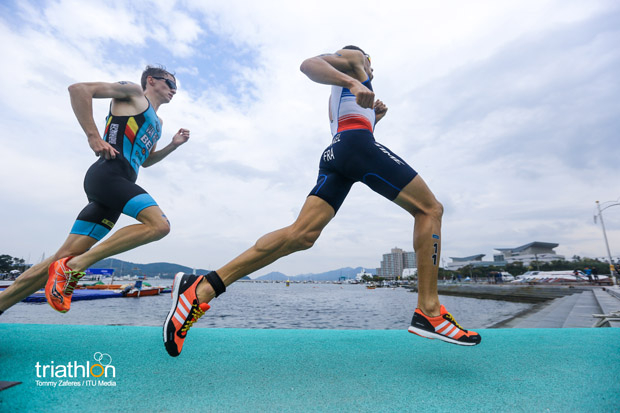 Summer Cook of the United States and Aurelien Raphael of France won the elite titles at the Tongyeong sprint distance World Cup.