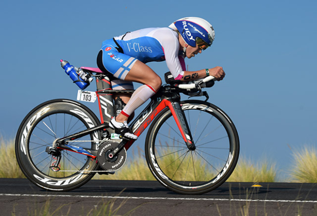 Kaisa Sali of Finland rode 4:59:50 on her way to 5th place pro woman at Kona.
