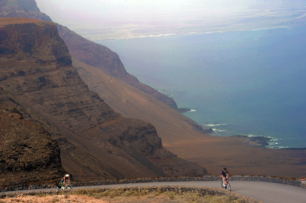 Approaching the 1,560 foot summit of the Mirador del Rio climb at Ironman Lanzarote.