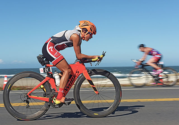 Barbara Riveros of Chile rides on The Great Highway past Ocean Beach on her way to 4th place pro woman at Escape From Alcatraz.