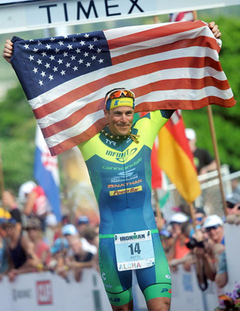 Seventh place finisher Andy Potts celebrates his top U.S. male finish at Kona.