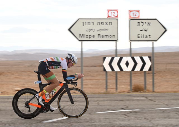 Diederik Scheltiga of Netherlands rides to 2nd place in Israman 113.