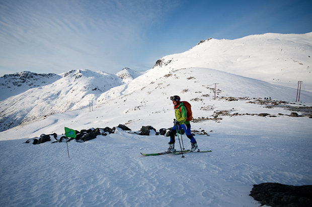 Ronnie Maas Pedersen showing his descending skills in front of a spectacular background.