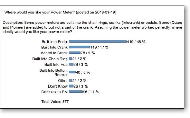 The pedal makes sense, because you can buy one power meter and it’s portable across bikes. No doubt this is what many of you were thinking when taking our poll a few weeks ago (results below).