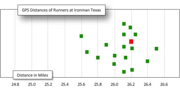 While the run times at IM Texas are curiously, suspiciously fast, unreasonably fast by some accounts, the GPS files of Slowtwitchers who’ve volunteered their data are presented here both for the run and the ride. They both show good consistency, good grouping, and the run course seems the legitimate distance or very close.