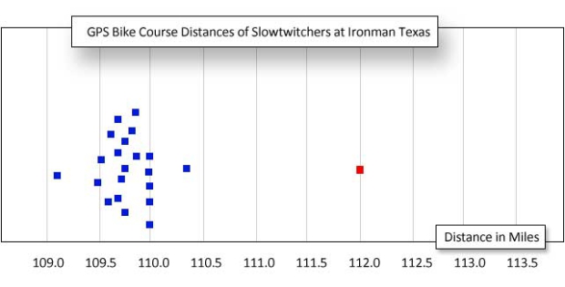 ST: I have seen GPS files ranging from 108-110 miles for the bike course and I think your unit did not work all the time. Did you notice it during the race or after the fact that you had a data drop?