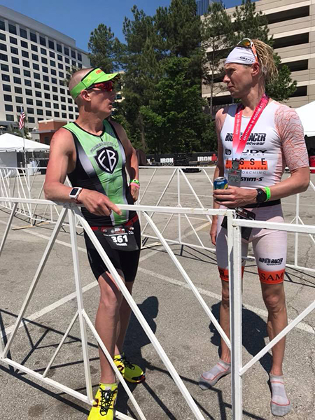 Sam: I didn’t know Ryan until I talked to him when we were trying to produce some pee at the post race drug testing but he was one of the guys up front on the bike riding a clean race. He also passed me at the beginning of the run but he was the one I didn’t see back before finishing. His performance was simply outstanding!