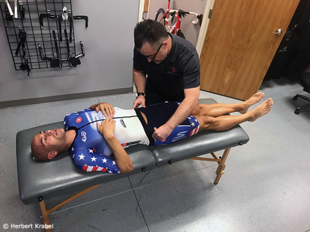Paraic McGlynn believes in the gebioMized saddle pressure mapping technology to further understand what is going on with the rider position, stability and pedaling. Here he gebioMized Matt Russell.