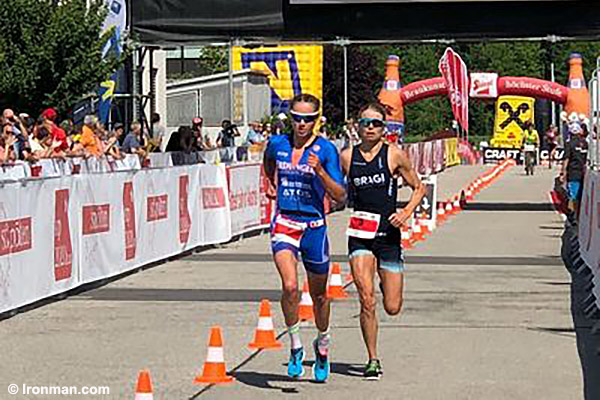 After 14 kilometers of the run leg, Lange passed Kastelein for second, 6:21 behind Frodeno and 40 seconds ahead of the Australian. Kastelein held on to a 1:06 lead on Böcherer.