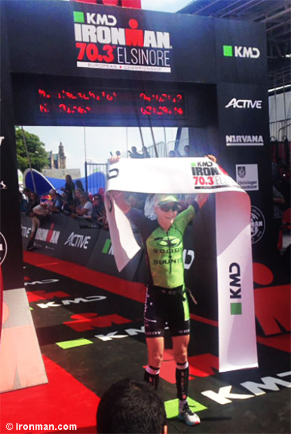 Helle Frederiksen of Denmark zoomed away to a 2:43 lead after a women's-best 24:34 swim. The surprise was that her first pursuer was Melissa Hauschildt of Australia, the two-time Ironman 70.3 World Champion who has for a long time struggled to minimize her deficit out of the water. The two leaders would never be challenged by chasers who started 4:48 to 6:14 behind – Sara Svensk of Sweden, Heini Hartikainen of Finland, Xenia Luxem of Belgium and Trina Boye Larsen of Denmark.