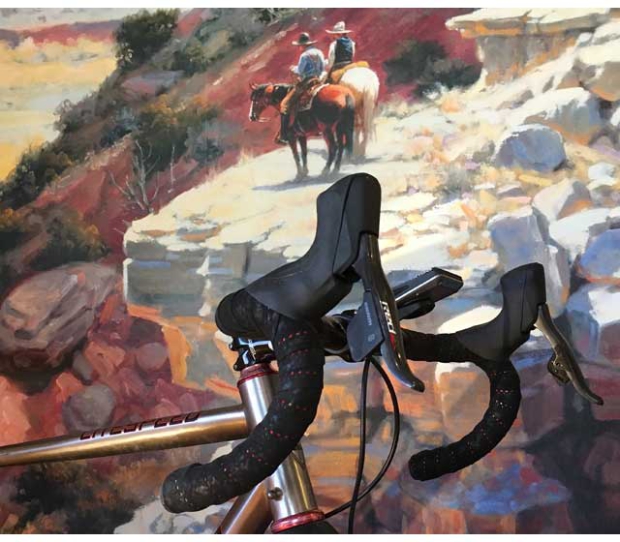 I’ve been riding around on Shimano Synchro on my tri bike via Shimano’s 1-button shifters. SRAM’s eTap works very much like that, where you press one paddle on the left, you shift inboard, you hit the shift paddle on the right, you shift outboard, just like each Shimano button on my tri bike’s extensions (and pursuits). But, with Shimano Synchro, the system decides for you when it's time to shift into a different chain ring. Because eTap is so like Shimano’s 1-button shifting I forget to put my gravel bike into the big chain ring. Weird. Anyway, you hit both paddles at the same time with eTap, and whatever the chain ring you’re in, the bike shifts it to the other. Very, very easy and intuitive.