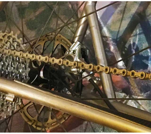 If I put an MTB crankset on the bike, say a 44×28, then I move from a road (145mm to 150mm) q-factor to something between 172mm and 175mm. I don’t want that. I want the same stance width, same q-factor, as road.